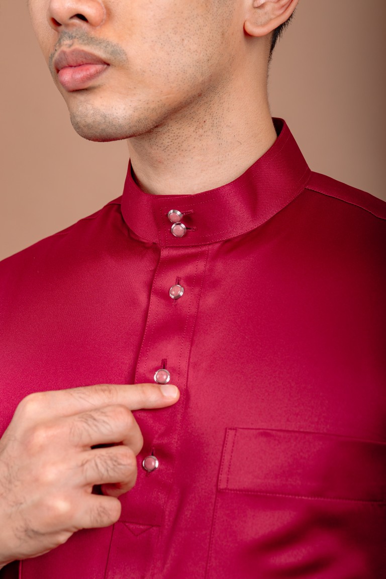 Make a statement with the Baju Melayu Sinar Satin, designed for those who appreciate a sleek and polished look. Crafted from high-quality satin, this Baju Melayu offers a wrinkle-free finish, ensuring you stay sharp and refined all day. The smooth and lustrous fabric enhances the elegance of the traditional silhouette, without pesak, making it perfect for Raya, formal events, and special occasions.